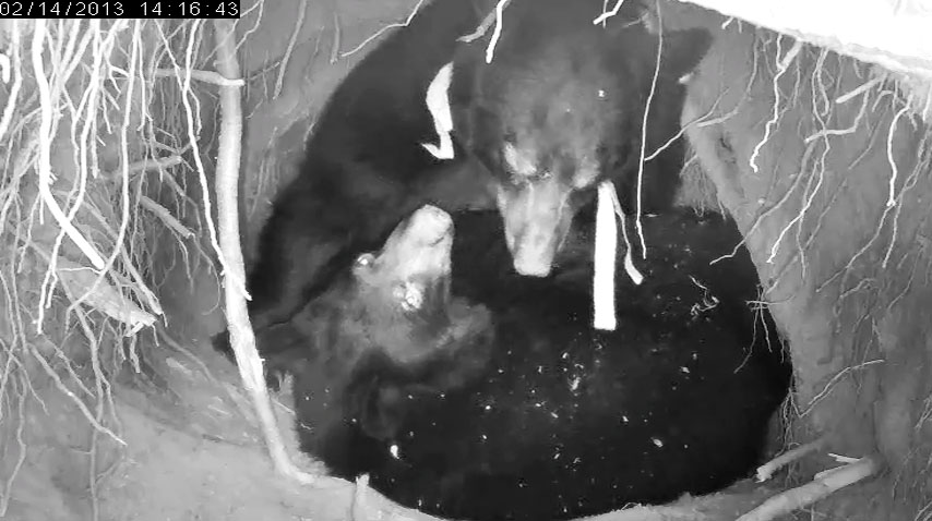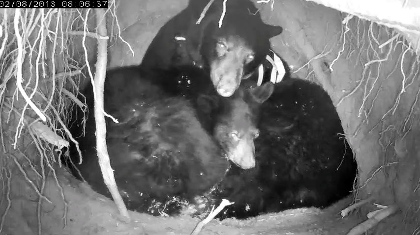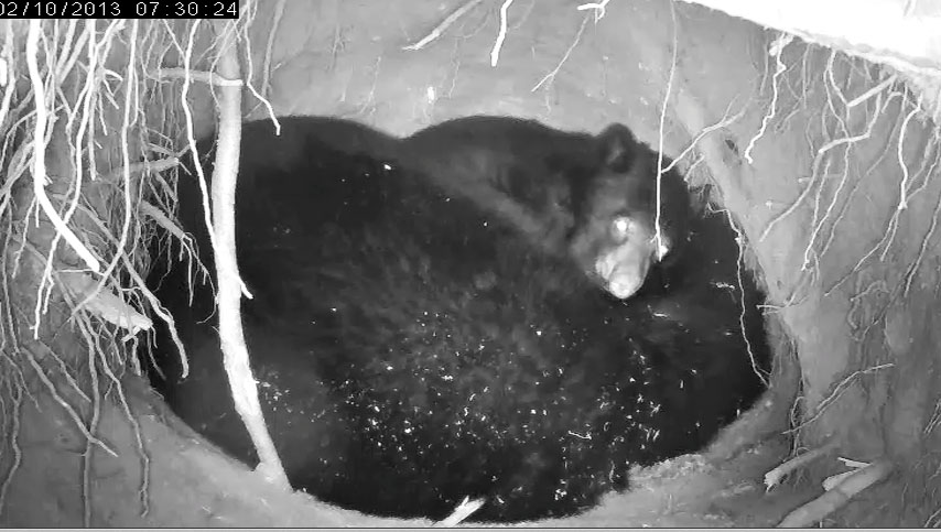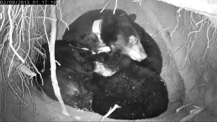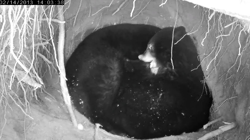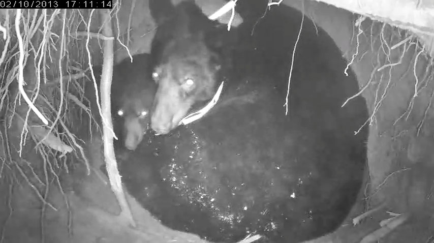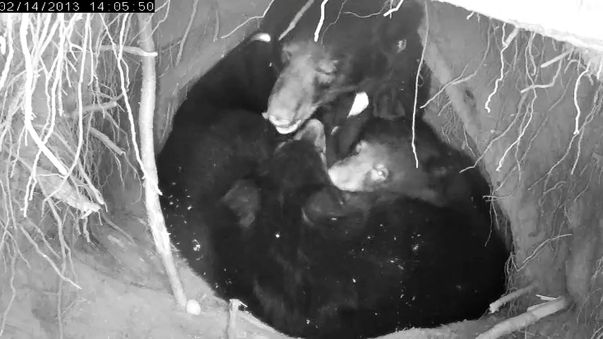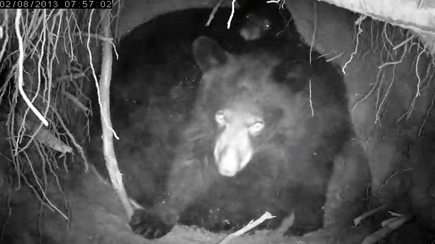 Das zeigte wie alarmbereit die Schwarzbären mitten im Winter sind. Ein Grund dafür ist, dass sie fett und gesund in die Höhle gegangen sind. Dünne Bären müssen in einen tieferen Winterschlaf verfallen, um Energie zu sparen, wie wir in früheren Updates geschrieben haben.