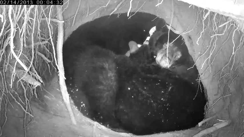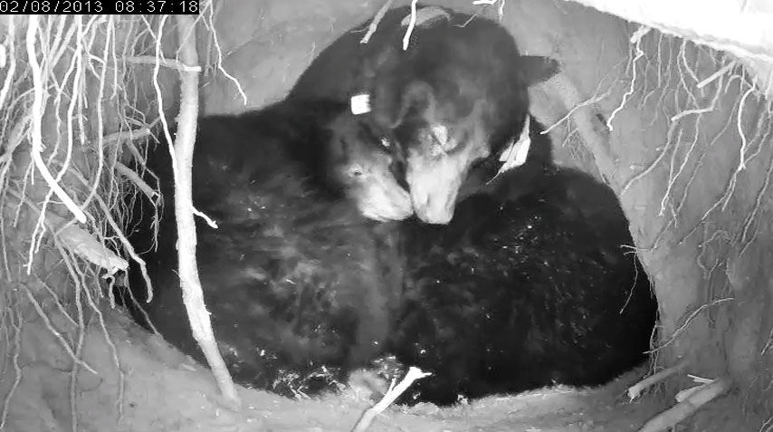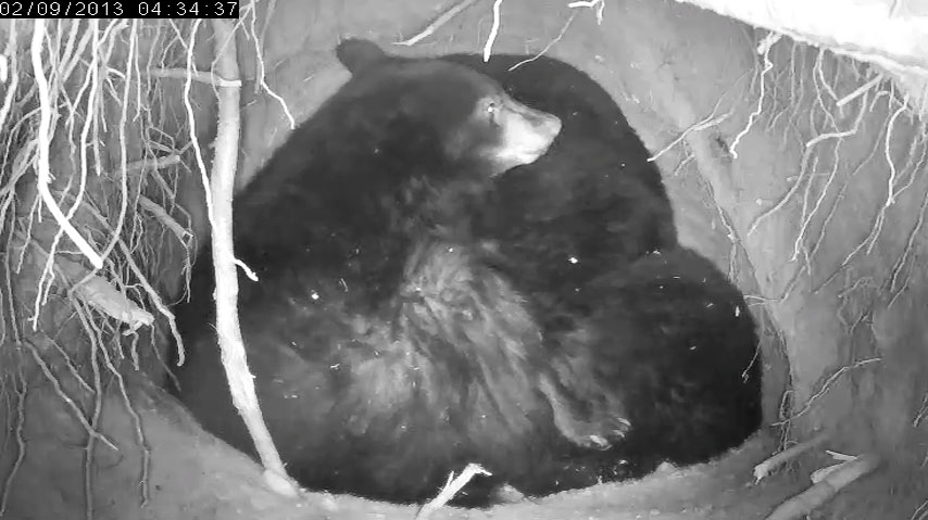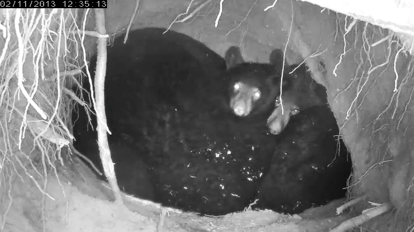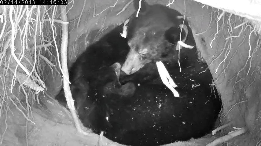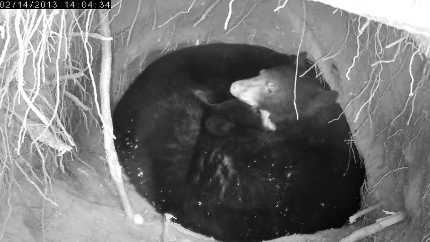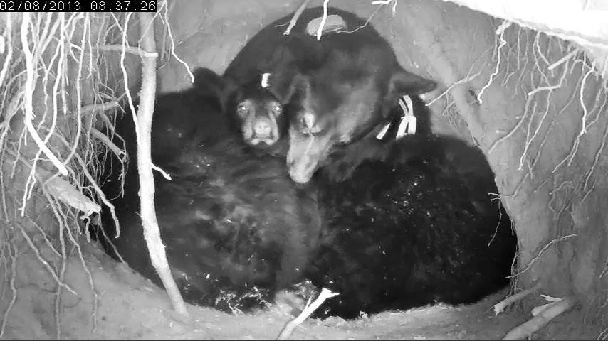 Doch Jewel und Lily müssen sich keine Sorgen machen. Beide haben Höhlen die gut vor Schnee geschützt sind. Doch das Bild der 3-jährigen Dot die 2003 schneebedeckt ihre neugeborenen Jungen, Cinder und Trueheart, schützt, zeigt wie gut isoliert Schwarzbären im Winter sind.