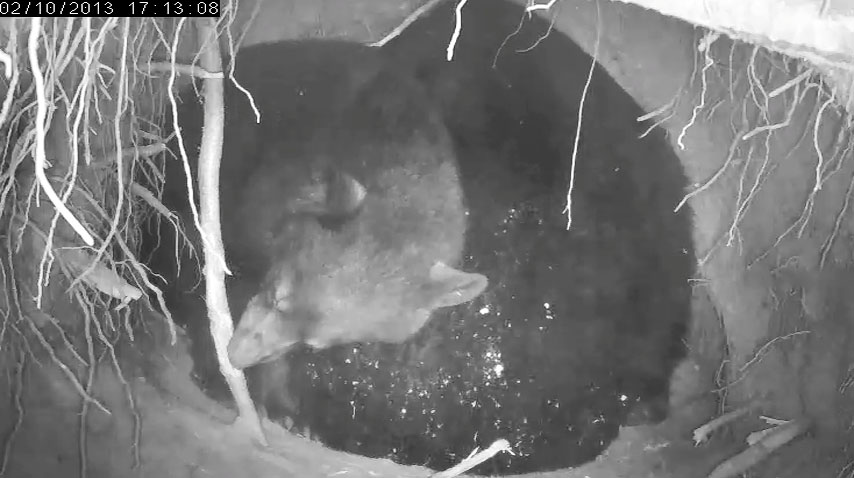 Es zeigt sich deutlich wie unmöglich es ist sich an die Höhle eines wohlgenährten Bären zu schleichen und normales Verhalten zu beobachten – und welches Glück wir haben, das durch die Höhlenkameras sehen zu können.
