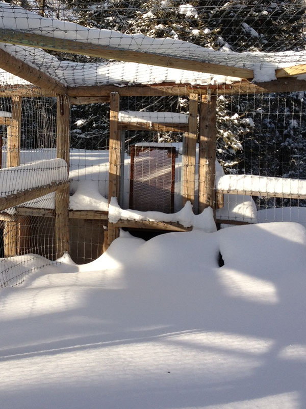 Am Bären Zentrum verrichten die Arbeiter ihre Arbeiten planmäßig und werden jetzt im Bärengehege arbeiten. Das bedeutet, den USDA Vorschriften zufolge, dass die Bären in Sicherheit bleiben müssen während die Arbeiter einen Abwassergraben graben, ihren Zaun reparieren und andere geplante Arbeiten im Gehege verrichten. Ob die Tore zu ihren einzelnen Gehegen offen sind oder nicht, macht für die Bären kaum Unterschied, auch wenn sie es bemerken. Keiner von ihnen hat seit vielen Wochen den Fuß vor die Tür gesetzt.