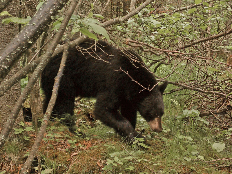 Seit fast einer Woche suchen Zierschildkröten (Chrysemys picta) und Schnappschildkröten (Chelydra serpentina) nach Gebieten mit Schotter, wo sie Löcher graben können um ihre Eier hineinzulegen. Bei einem Gebiet in dem Dutzende und mehr Schildkröten jedes Jahr Eier legen haben wir Kameras installiert um zu sehen, ob die Bären zu den Tieren gehören die die Eier ausgraben und sie fressen. Wir haben viele ausgegrabene Eier gesehen, aber unter den vielen Spuren niemals eine Bärenspur gefunden.