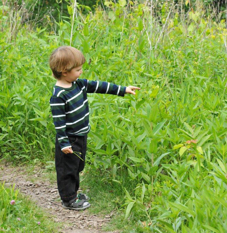 Lynn und Donna Rogers waren nach Minneapolis gefahren, sodass Donna einen Tageskurs über Monarch-Schmetterling an der der Universität von Minnesota besuchen konnte, während Lynn, ihre Tochter Colleen und Enkel Heinrich den Eloise Butler Wildblumengarten besuchen konnte. Der 15 Morgen große Naturwald, 1907 als Naturschutzgebiet ausgewiesen, ist das Nonplusultra von interpretierenden Lehrpfaden. Seine Tochter Colleen ist eine Lehrerin/Naturforscherin. Er wollte ihre Meinung hören und sehen, was den kleinen 2 ½ jährigen Heinrich, der unter der Anleitung von Colleen schon ein kleiner Naturforscher ist, interessiert. Heinrich war an Käfern und Fröschen interessiert und an einer Familie von schwer zu erreichenden wilden Truthähnen. Wir hoben Spinnen und andere Insekten auf, zerteilten Pilze und berührten viele Sachen – alles während wir brav auf den Pfaden blieben. Lynn konnte Heinrichs Bezeichnung für Libelle nicht verstehen, doch Heinrich wusste und zeigte auf eine. Ein großartiger und erinnerungswürdiger Tag.