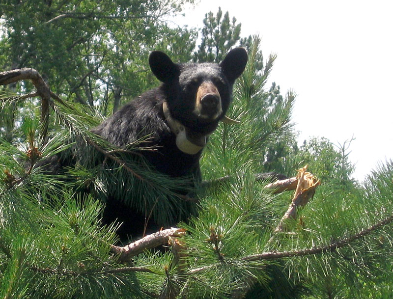Sie toleriert auch andere Menschen. Wir hörten zum Beispiel eine Geschichte wie June vor der Familienauflösung Gras neben der Bear Head Lake State Park Straße fraß. Ein Paar aus der Gegend machte eine Spazierfahrt durch den wunderschönen Wald, als sie zwei Junge neben der Straße grasen sahen. Die Frau stieg aus um ein Bild zu machen und bemerkte erst dann, dass June in einem Graben einige Fuß entfernt war. Die Frau zeigte ihre leeren Hände, ging an June vorbei und fotografierte Aster und Aspen, während June weiter graste. Die Frau stieg wieder ins Auto und sie fuhren weiter. Die ganze Geschichte ist das normale Verhalten von Leuten, die hier Bären seit 50 Jahren sehen und June seit fast einem Jahrzehnt lieben.