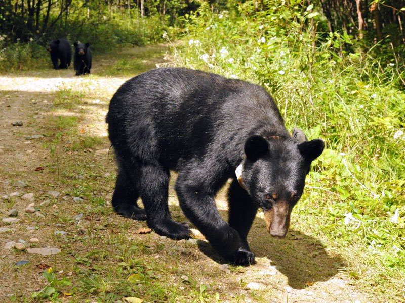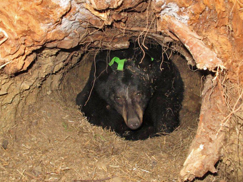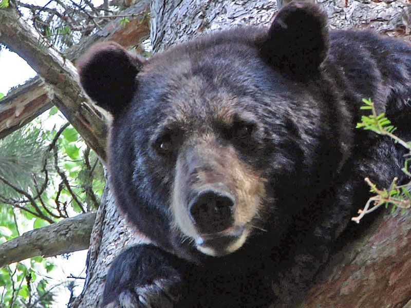 Seit langem wissen wir, dass territoriale Weibchen manchmal eindringende Bären auf Bäume scheuchen und sie in einen Fuß beißen. Schwarzbären müssen mit dem Gesicht nach oben ausharren. Sie können ihre Hüftgelenke nicht drehen und wie ein Eichhörnchen mit dem Gesicht nach unten hängen. Territoriale Weibchen wissen dass sie ganz sicher einem Eindringling auf einen Baum hinterher klettern können, in den Fuß beißen und den Bär sogar aus dem Baum werfen können. Wir hatten einen besenderten Bären, der auf diese Weise vor einigen Jahren getötet wurde. Dieses Merkmal ist einer der Gründe, warum wir Menschen nicht empfehlen auf Bäume zu klettern, wenn sie mit einer Schwarzbär-Mutter zusammentreffen. Uns liegen Berichte von 12 Personen vor, die auf diese Weise in den Fuß gebissen wurden.