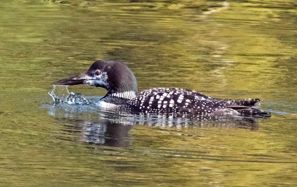 Der Tag wurde hell und schön an diesem Tag an dem wir das Pontonboot für den Winter verstauten. Vorher machten wir eine kleine Tour und sahen die wunderschönen Farben der Ahornkulisse und Taucher die zum Winterkleid mauser. Ein Taucher hatte etwas weiß n den Seiten und oben auf dem Kopf. Zwei andere Altvögel haben fast vollständig zum Winterkleid gemausert, das ganz ähnlich wie jugendliches Gefieder aussieht.