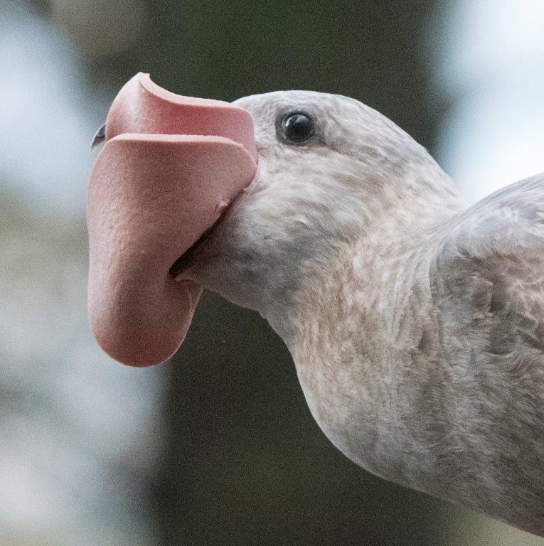 Wir dachten die Möwen wären weg, doch, nachdem wir eine Woche keine gesehen haben, kam die Junge heute wieder um 4 Scheiben Bologna zu fressen. Auf dem Bild sieht man, wie sie die letzten zwei vertilgt.