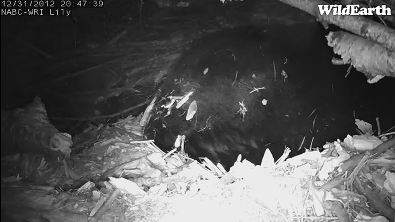 Die Höhlenkameras laufen gut. Heute hat Lily eine Mauer aus Holzschnitzeln gebaut und uns die meiste Sicht versperrt, doch später hat sie umgeräumt und die Sicht ist besser als zuvor. Wir werden sehen, was morgen passiert.