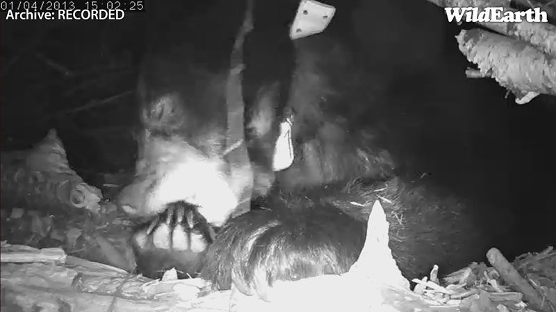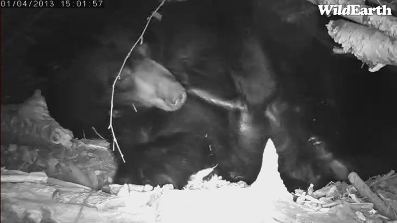 Ein Segen ist es, dass die Bären die Kameras nicht untersuchen und die Linsen ablecken – wenigstens bisher nicht. Könnte es sein, dass die Höhlen-Kameras so ein Teil des Winterschlafes sind, dass sie von den erfahrenen Bären keine Beachtung verdienen? Das ist eine weitere Sache, die uns das glückliche Gefühl gibt in der Lage zu sein, Teil in dieser geheimen Hälfte ihres Lebens, die bisher so wenig erforscht wurde, zu sein.