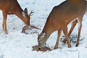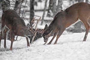Reh mit gebrochenem Geweih und Gabelgeweih