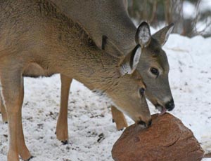 Vor dem Fenster kamen Meisen und Kanadakleiber um sich Sonnenblumenkerne zu holen und Rehe kamen friedlich zum Dattelmash (außer wenn der Bock mit dem gebrochen Geweih egoistisch wird). Andere Rehe teilten sich Blöcke so friedlich, dass sie oft mit den Köpfen zusammenstießen, sich aber nichts daraus machten.