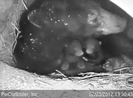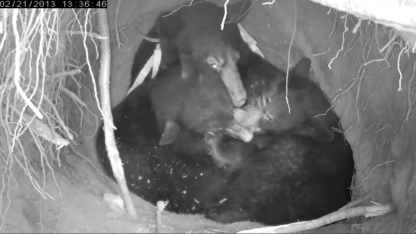Whiteheart war kaum alt genug um Junge zu haben. Unsere Erwartungen waren hoch. Mitte Januar verging ohne Geburt, doch sahen wir erheblich mehr Aktivität in der Höhle als wir erwartet hatten. Whiteheart wechselte häufig die Position, arrangierte ihre Schlafstelle neu und putzte sich. Sie entfernte ihre Fußsohlen. In dieser Zeit lernten wir und eine unbekannte Anzahl von Zuschauern vor sozialen Medien, dass viel mehr Aktivität in einer Höhle herrscht, als je zuvor beschrieben wurde.