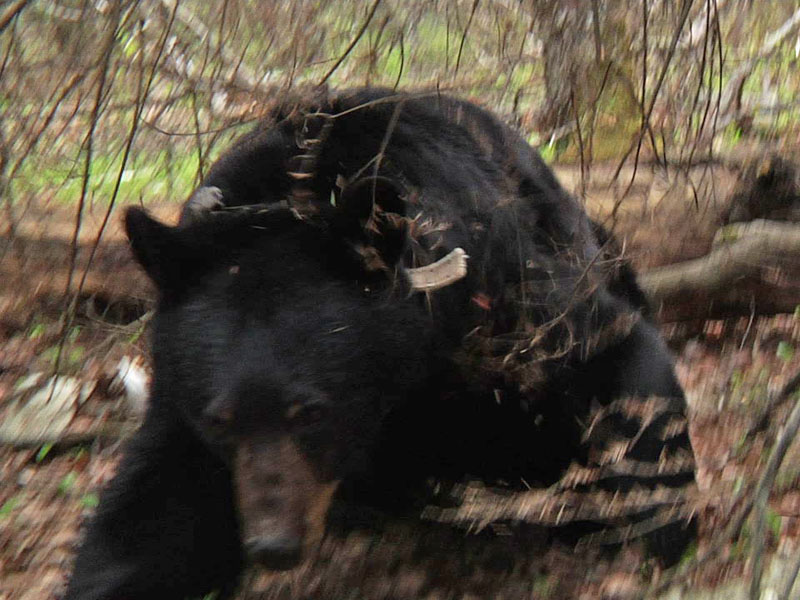 Gestern war Dots Tag. Ihre ganze Geschichte würde ein Buch ausfüllen. Dot und Donna waren Blackhearts erste Junge im Jahr 2000. Sie sind die Jungen die auf Lynns Schoß schlafen und sitzen und an der Höhle gewogen werden (Dot, „6 Pfund“) in „Der Mann der mit den Bären wandert“ auf Animal Planet Anfang 2001. Dot hatte als Jährling Probleme mit Blackheart und Oma Shadow und hatte zum Schluss einen geschwollen Unterarm von einem Biss. Sie beschloss deren Revier zu verlassen. Zuerst ließ sie sich nur 3,25 Meilen entfernt nieder, hat jetzt aber ihren Bereich 13 Meilen weit weg ausgeweitet. Dot und ihr erster Wurf im Jahr 2003 waren die Höhlenbären aus dem BBC Film „Wildlife on One“ bei dem hochtechnologische Neuheuten eingesetzt wurden um das Leben von Neugeborenen Jungen in einer Höhle aufzuzeigen. Dot war so freundlich ihr Bein zu heben als Lynn eine winzige Infrarotkamera unter sie mit den Kleinen platzierte. Doch stürzte sie aus der Höhlen, wenn sich jemand näherte den sie nicht kannte. Sie hat niemals jemanden verletzt. Es gibt so viel über ihre Wanderungen zu erzählen und wir hoffen das alles in einem Buch zusammenfassen zu können.
