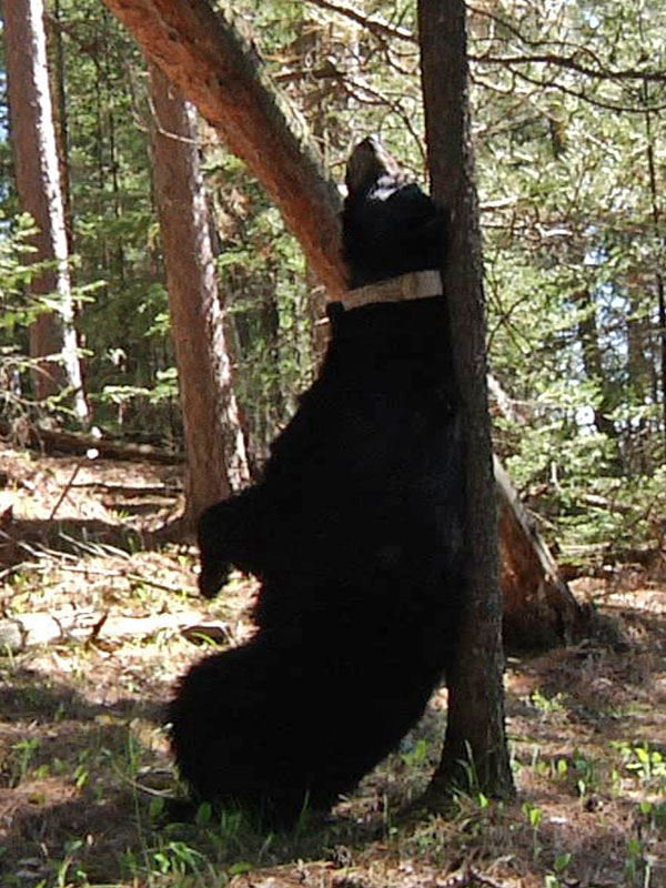 Ein paar Jahre lang trug sie ein Sender-Halsband, doch war es uns seitdem nicht möglich ihr eines anzulegen. Während sie eines getragen hatte, fragten uns zwei Wildtier Offizielle aus einem anderen Staat wie Bären auf Menschen im Wald reagieren, nachdem sie jahrelang die Futterstationen besucht hatten und sich an die Menschen an diesen Stationen gewöhnt hatten. Wir erklärten dass der Bär mit den meisten Jahren Erfahrung dazu in einem nahegelegenen Tal weilt wo sie sich selbst davon ein Bild machen könnten. Das war natürlich Shadow. Sie nahmen unsere Telemetrieausrüstung und zogen los. Zwei Stunden später kamen sie zurück. Shadow hat sie im Kreis herumgeführt ohne dass sie sie zu Gesicht bekommen hätten bevor sie sich aus dem Gebiet entfernte. Wir erinnern uns an mehrere gleiche Erfahrungen die wir selbst gemacht hatten wenn wir nach ihr sehen wollten. Sie wird niemals ein Bär sein mit dem wir laufen können, doch hat sie andere Vorzüge. Jeder Bär hat seine eigene Persönlichkeit und seine eigene Art zu lehren.