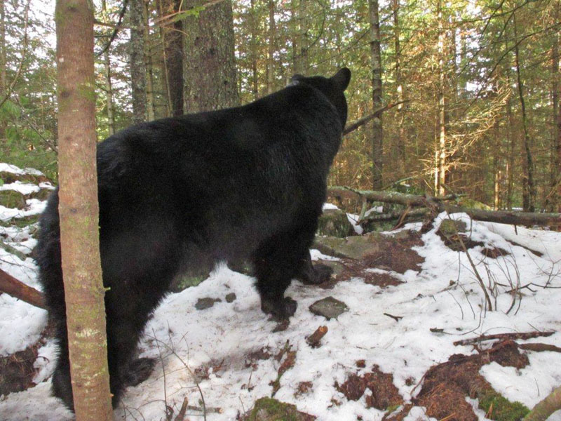 Das ist die Zeit des Jahres in der Bären hier Kadaver fressen – besonders Biber Kadaver. Vor vierzig Jahren legten wir einen Rehkadaver vor die Höhle einer Mutter mit neugeborenen Jungen um zu sehen, ob ein Bär, dessen Magen 6 Monate lang geschrumpft ist ohne Nahrungsaufnahme, das fressen würde. Sie fraß. Sie fraß0 das fast ganz auf bevor sie die Höhlengegend verließ. Etwas später im Jahr (5. Mai) untersuchte ein besenderter Bär einen Elch, der Opfer der Straße wurde. Wir hatten das ausgesetzt um zu sehen ob der Bär das fressen würde. Nee. Zu diesem Zeitpunkt kam das frische Gras am Straßenrand heraus und der Bär fraß das. Doch für jetzt, dieses Jahr, steht Biber-Kadaver auf dem Speiseplan.
