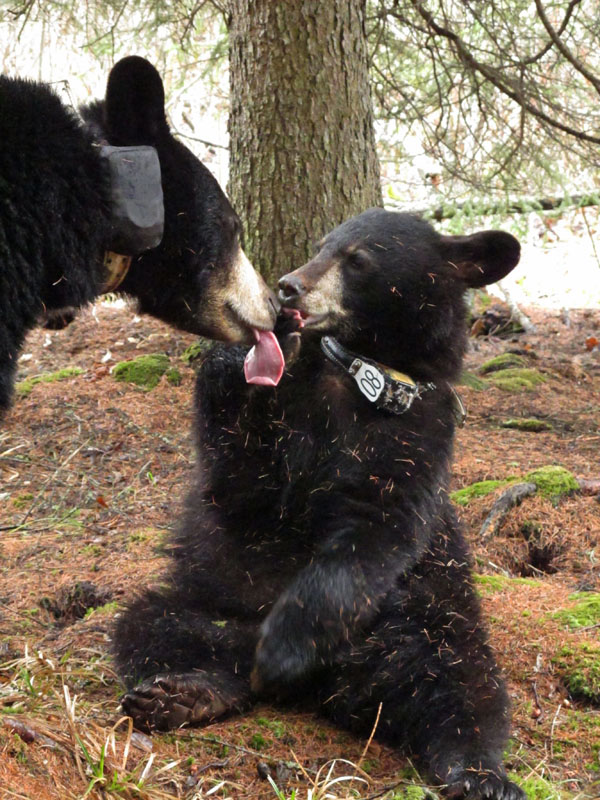Mit der jetzt wenigen Nahrung in den Wäldern würde der menschliche Verstand sagen, da0 diese Bären menschliches Futter anstreben sollten. Sie kennen alle verschiedenen Wohnsitze an denen Bären gefüttert werden, aber sie bleiben viele Meilen von diesen Plätzen entfernt. Lily und Faith sind 1.9 Meilen vom nächsten Haus entfernt. June und ihre Jährlinge sind nur 550 Yards vom Bear Head See Park Campingplatz entfernt, einem Platz an dem June in ihren 11 Lebensjahren niemals war. Wer kann das erklären? Wir beobachten nur und berichten was sie machen. Oft wissen wir nicht, warum sie was machen.