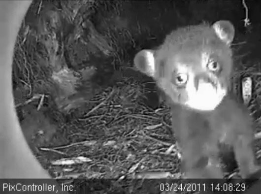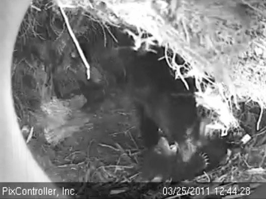 Ein weiterer Tag der Aktivitäten innerhalb und außerhalb der Höhle! Außerhalb der Höhle versuchte Faith sehr Lily zu folgen und überraschte uns mit ihrem sichereren Laufen. Lily sammelte etwas mehr Einstreu und ruhte sich dann in dem Bett aus, dass sie vor einer Woche in den Schnee gegraben hatte und stillte Faith. Jason gesellte sich für eine Runde zu seiner Schwester doch schlief kurz darauf ein. Wahrscheinlich war Jason nur müde. In der Höhle wandte Hope ihre Aufmerksamkeit der Kamera zu nachdem ihr Stillversuch zurückgewiesen wurde. Mit der Kamera versenkt wie sie jetzt ist, war sich nicht so erfolgreich wie früher die Linse mit ihrem Lecken zu beschichten. Vielleicht müssen wir es einfach so lassen, wie es ist und etwas von der Röhre sehen.