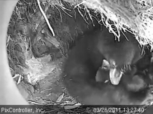 Wenn es draußen zu dunkel wird um sie zu sehen gehen sie hinein. Viel Gekreische ist zu hören, das hat aber nichts mit Hope zu tun. Sie ging wieder hinaus. Endlich um 20:12 h kam Hope wieder rein und die Kleinen haben sich weitgehend beruhigt. Wir wünschten wir hätten einen besseren Einblick um zu verstehen was vor sich geht. Um 20:20 h wurden alle gestillt. Wir lieben diesen friedlichen Ton.