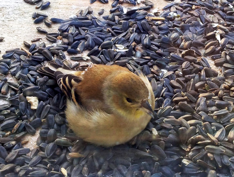 Goldzeisig aufgeplustert gegen die Kälte