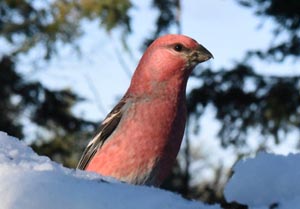 Fichtengimpel zeigten wunderschön ihre Farben.