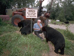 Als sie die Ausstellung von alten Zeitschriftenumschlägen sah, wurde ihr klar „dass es genau das war, wo ihre Angst vor den Bären begann. Mein Vater hatte Jagdzeitschriften herumliegen, und Bären wurden immer als grausame, menschenfressende Tiere dargestellt. Als mir klar wurde, dass dort meine unrealistischen Ängste begannen, war ich in der Lage mehr über Bären erfahren zu wollen. Ich ging in das kleine Kino im Zentrum und schaute mir Ihr Video ‚Bearwalker of the Northwoods‘ an. Ich war zutiefst berührt von Ihrem Engagement und dem Ihrer Frau für diese sanften Riesen. Einmal standen mir wirklich Tränen in den Augen, als ich begann Bären zu schätzen und zu umarmen statt sie zu fürchten und Angst vor ihnen zu haben. Sie haben tatsächlich in Bezug auf die Bären mein Leben verändert mit ihrer Forschung und Ihrem Verständnis für diese Tiere. Nachdem ich das Bären Zentrum verlassen hatte fuhr ich weiter zum Bear Head State Park. Zum ersten Mal ging ich in den Northwoods, ohne Angst vor Bären zu haben, wandern. Es regnete, aber das hatte keinen negativen Einfluss auf meine 35 Meilen Wanderung, weil ich mich verändert hatte – für immer auf eine gute Art verändert. Ich werde immer ein vorsichtiger Wanderer sein und Vorkehrungen treffen, aber jetzt habe ich, dank Ihnen und Ihrer unermüdlichen Forschung, eines weniger zu fürchten. Ich kaufte Ihre ‚Bearwalker‘ DVD und zeigte sie meinen Eltern. Sie waren so überrascht wie ich es war und auch sie sind dankbar für die Lektionen, die Sie uns gelehrt haben.“