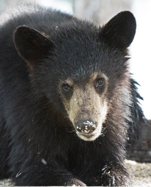 Heute gab es mir einen Ruck, als ich einen Anruf über ein verwaistes Junges in der Nachbarschaft bekam. Das hat sich irgendwie herumgesprochen. Als ich dorthin kam, ging ein Anwohner gerade weg, der den Bären als Jährling Spanky, frisch getrennt von seiner Mutter Shadow, identifiziert hatte Spanky ist leicht zu erkennen an seinem hellen Fell, das wie eine Brille über jedem Auge wächst. Die weißen Samen auf seiner Nase sind Sonnenblumensamenherzen. Die Leute, die angerufen hatten, lieben Bären.