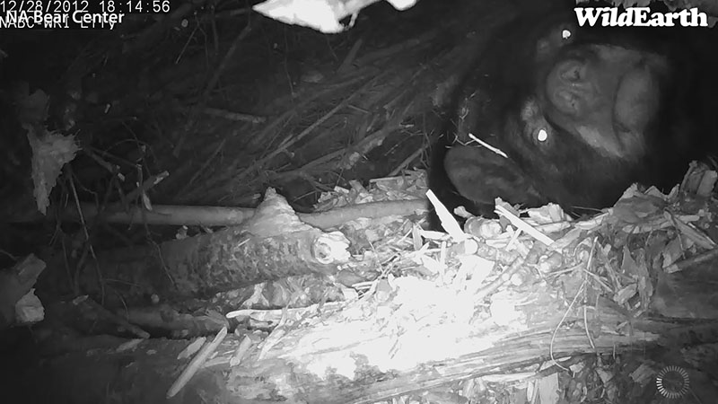 Wir warten darauf, die Codes von WildEarth TV eintragen zu können, damit die zwei Wildbären Kameras online gehen können. Die Weihnachtsfeiertage haben alles etwas verlangsamt. Wenn wir das Bild von Jewel anschauen, sehen wir, dass wir näher heranzoomen müssen, um das Tageslicht etwas aufhellen zu können, um die Bären genauer sehen zu können. Die nächtlichen Infrarot Bilder sind in Ordnung.