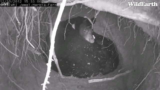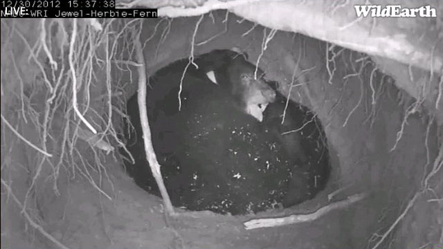 Die Links zu den Höhlenkameras sind http://www.bear.org/website/live-cameras/live-cameras/lilys-den-cam.html und http://www.bear.org/website/live-cameras/live-cameras/jewels-den-cam.html.