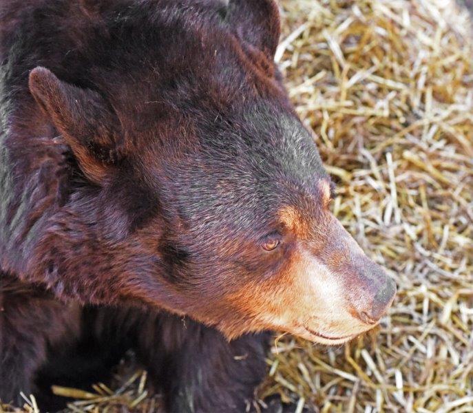 Heute früh habe ich Honey zusammen mit Bären Kuratorin Sharon Herrell, Abteilungsdirektor Scott Edgett, Büro Manager Heidi Schlitz und der Besitzerin Cindy besucht. Die Mitarbeiter und Cindy haben lange Zeit bei Honey verbracht, haben alles getan, damit Honey sich wohl fühlt – Futter, Wasser, Stroh und ein großes Zeltdach um Schatten zu spenden und den Regen von ihr abzuhalten. Die Stelle, an der Honey vor einer Woche aufhörte zu laufen, ist unmittelbar vor ihrer Höhle.