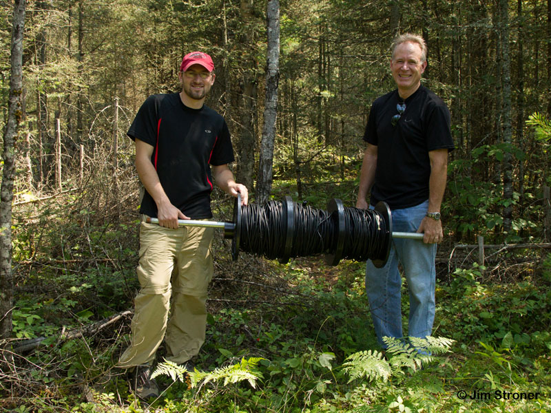 Heue wurden die letzten Reste der Jewel Höhlenkamera Ausstattung aus dem Wald entfernt. Praktikant Daniel Simpson und sein Vater Scott halfen die Kabel auf Spulen zu wickeln – bereit für die nächste Kamera-Saison.