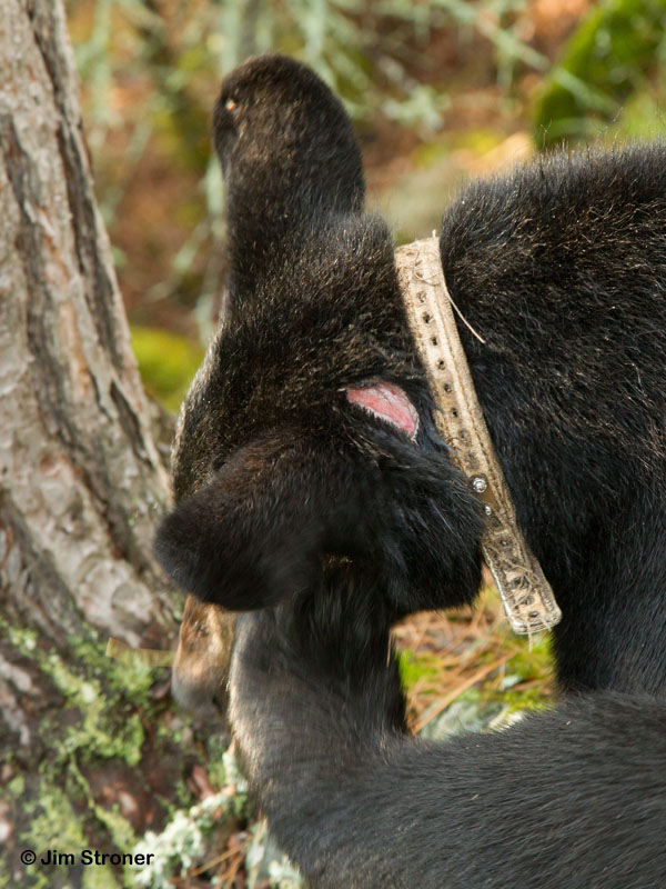 Wir trafen auf Sharon, die versuchen könnte, ein Revier in dem Gebiet südwestlich von Tower, MN, das sie immer wieder besucht, aufzubauen. Sie könnte auf Widerstand stoßen wie man einer großen frischen Schramme auf ihrem Kopf entnehmen kann. Wir wechselten ihre GPS Batterien um mehr Daten zu bekommen, wo sie Futter sucht und wo sie sich niederlässt.