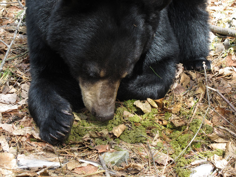 Draußen im Wald bewegten sich Lily und Faith ausschließlich in Lilys Revier und sind in den letzten paar Tagen mehr als 7 Meilen von Punkt zu Punkt gegangen. Die heutigen Exkremente von Lily waren, als Lynn ihr GPS Gerät auswechselte, fast nur pflanzlich. De Hauptnahrung in diesen Tagen besteht aus Großblättriger Aster (Aster macrophyllus), von der sie sich nur einige Wochen nachdem diese herauskommt, ernähren. Wenn sich die Blätter entfalten, hören sie damit auf.