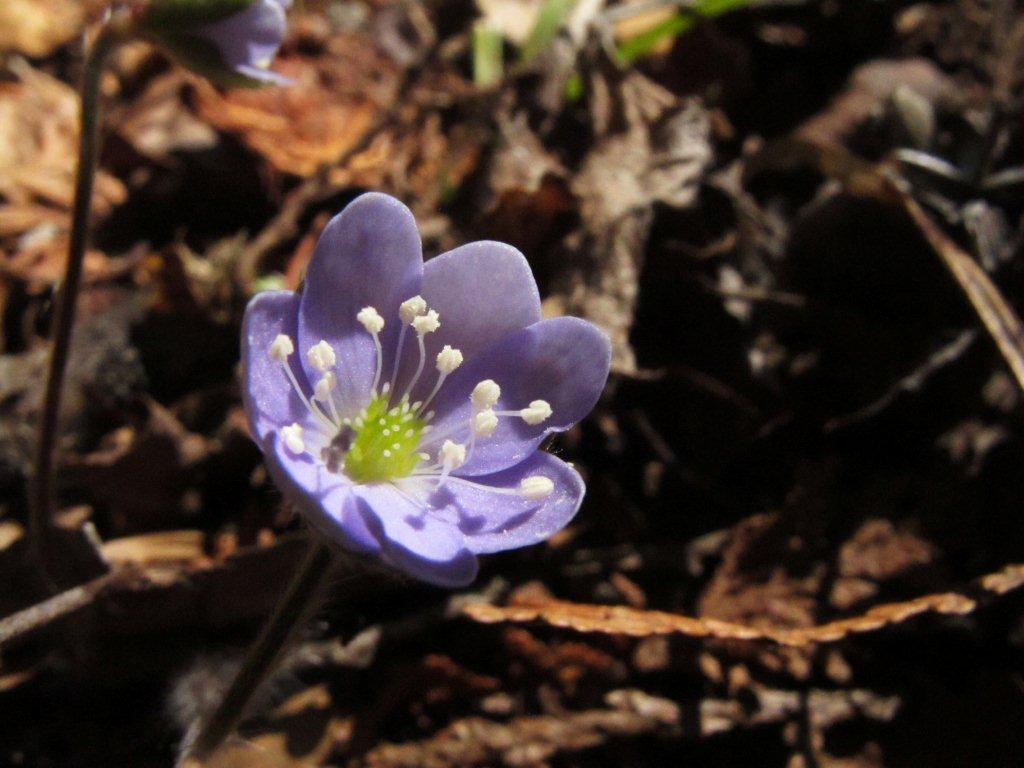 Der Frühling sprießt entlang der Naturpfade um das Bären Zentrum. Leberblümchen (Hepatica americanus)