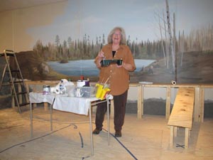 Eine Frau, die beim Nord Amerikanischen Bären Zentrum geholfen hat, ist Künstlerin Maureen O’Brian die die große Wandmalereien malte, die dem Bären Zentrum Klasse gaben
