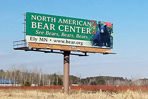 Auf ihrem Weg zum Bären Zentrum hinauf nahmen Sarah Zirbes und ihr Mann Dan ein Bild von der ersten Plakatwand auf. Sie sagten dass es am Highway 35 Nord ungefähr 200 Yard südlich von der Ausfahrt Beroun ist. Das ist etwa 8 Meilen südlich von Hinckley und ungefähr 60 Meilen Nord von Minneapolis/St. Paul. Ich denke es sieht gut aus. Es ist einfach, auffällig und erzählt die Geschichte.