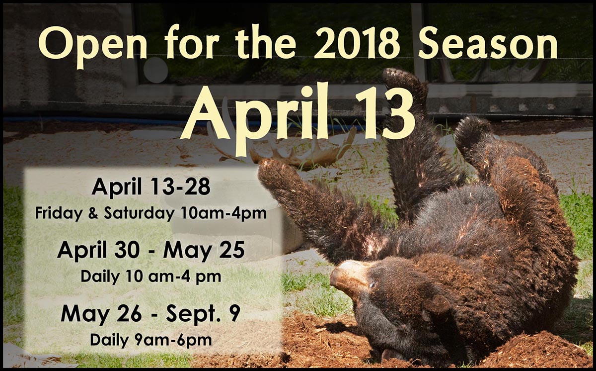 Die Wetterverhältnisse haben die große Eröffnung des Nord Amerikanischen Bären Zentrums um eine Woche verzögert. Das Eröffnungs-Wochenende ist jetzt am 13-14. April.