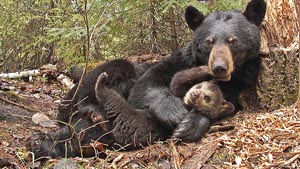 Tasha macht Sachen, die ich in der freien Natur gesehen habe. Wenn ‚Bären sich ein Bett machen wollen wo Schnee liegt, beißen sie oft Zweige klein, einschließlich Zedernzweigen, wie es Holly in diesem VIDEO machte. Ich habe nicht gesehen, ob sie es wirklich in ihrem Bett benutzte, aber die nächste Szene zeigt sie in ihrem Bett. Gute Aufnahmen, 7 Minuten lang.