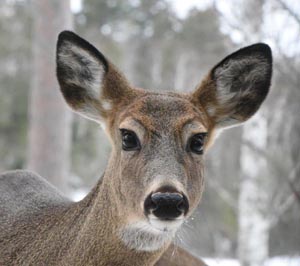 Vor dem Fenster schaute ein Reh. Heute früh schaute die halbzahme Krähe fast nachdenklich als es schneite. Später krähte sie auf demselben Zweig. Ich habe mir immer gewünscht mehr über die Gedanken der Tiere zu wissen.