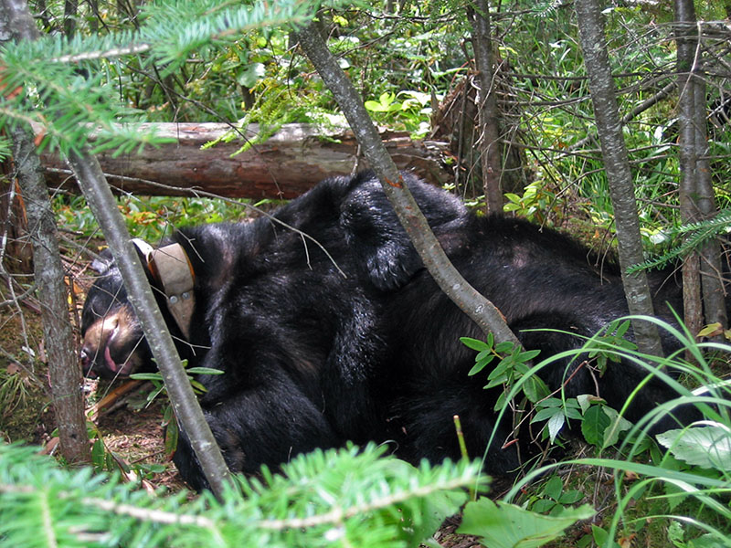 Und gelegentlich, sehr zum Leidwesen der Forscher, die einen bestimmten besenderten Bären überprüfen, war, dass sie in das Höhlengebiet gingen und dort ein verlassenes Funkhalsband gefunden haben, aber keinen Bären!