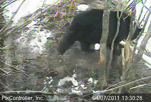 Eine kurze Zusammenfassung des Tages, die Kamera spielte den ganzen Morgen verrückt und gab schließlich ganz den Geist auf, was es nötig machte, dass Jason mit dem Schneemobil raus zum Schuppen fuhr. Da die Kamera nicht funktionierte konnten wir nicht beobachten wie die Bären auf Jasons Ankunft reagierten. Dann, als die Kamera wieder lief, schließen die Bären und es gab keine Anzeichen für Störung als das laute Schneemobil davonfuhr.