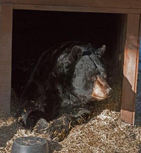Als ich wegging, waren Holly und Lucky draußen und beobachteten, was ich machte. Tashas Höhle ist im Blickpunkt ihres Geheges. Es ist schön zu sehen, wie relaxt diese beiden Bären miteinander sind. Als ich Hallo zu Lucky sagte, leckte ich seine Nase. Manchmal leckt er leicht zurück, doch ohne den Enthusiasmus den Ted zeigt. So zu lecken ist die höchste Art der Begrüßung und Bindung zwischen Schwarzbären. Ich erinnere mich, als Ted und Lucky ihr erstes Lecken austauschten und jahrelange Spielkameraden wurden.