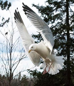 Vor dem Fenster kommen mit den südlichen Winden, die unser warmes Wetter bringen, Vögel an. Heute als die uns bekannte Möwe für ihr Stück Bologna herunterkam, kreisten (neidisch?) zwei andere Möwen über uns. Keine von ihnen landete jedoch, so sind sie wahrscheinlich keine, die das hiesige Programm vom letzten Jahr kennen.