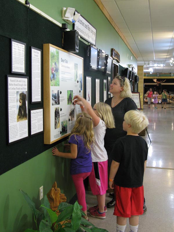 Heute am Bären Zentrum trafen Donna und ich uns mit unseren Freunden, dem ehemaligen DNR Beauftragten Allan Garber und seiner Frau Kim. Im Hintergrund ist das schöne neue Schild, das gerade am Eingang der Northwoods Ökologie Halle angebracht wurde.