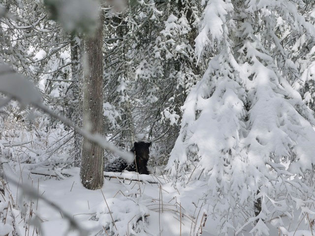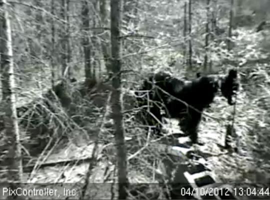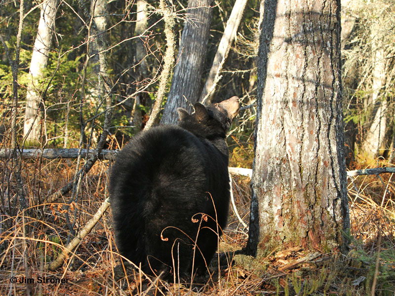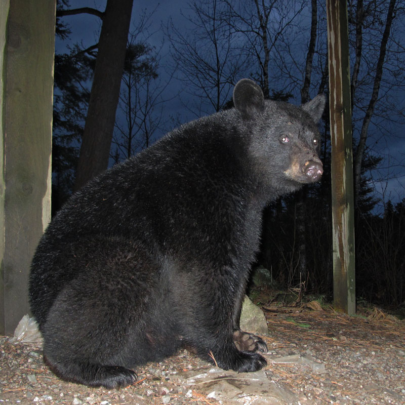 Letzte Nacht hatten wir unseren ersten Bärenbesuch des Jahres – Jim ein 2-jähriger Bär den wir gut kennen. Bärenverhalten ist natürlich bei den verschiedenen Individuen unterschiedlich. Jim ist weit genug in seiner Erholung vom Winterschlaf fortgeschritten um seinen ersten Besuch zu machen. Doch er ist immer noch ungewöhnlich scheu. Er sah uns und rannte weg. Er ist nicht besendert.