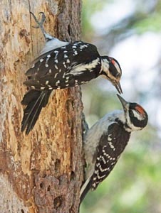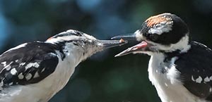 Vor dem Fenster hat ein Haarspecht Papa ein flügges Baby, das genauso groß wie er ist und ein hungriges ausgewachsenes Bären Männchen machte Pause von der Paarung., Ich bin nicht sicher, wer er ist, aber eine Wunde auf seiner Nase wird ihn für immer erkennbar machen, wenn wir erst festgestellt haben, wer er ist. Kein Wunder, dass er hungrig ist in dieser Paarungszeit. Männchen verbringen so viel Zeit mit paaren, dass sie kaum fressen und sie können während der Paarungszeit genauso viel Gewicht verlieren wie im Winter.