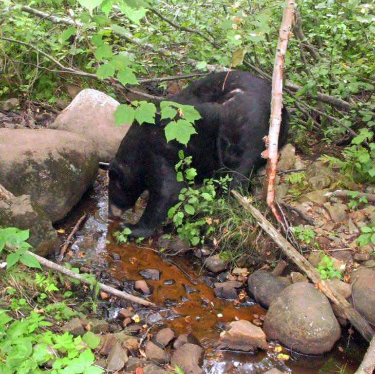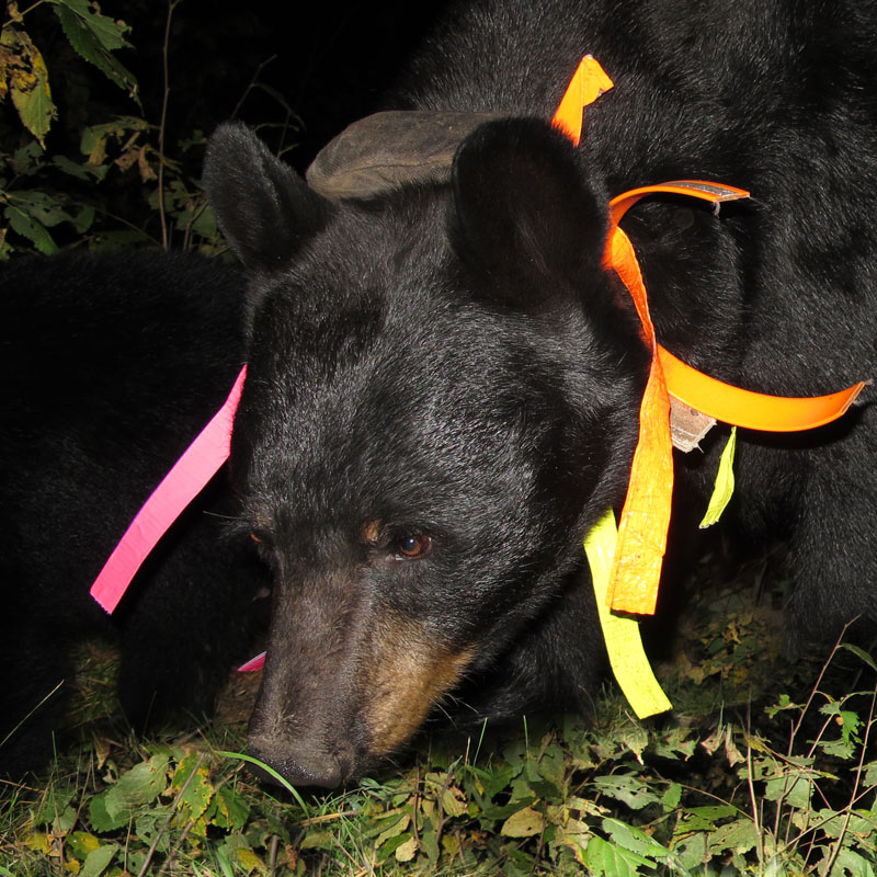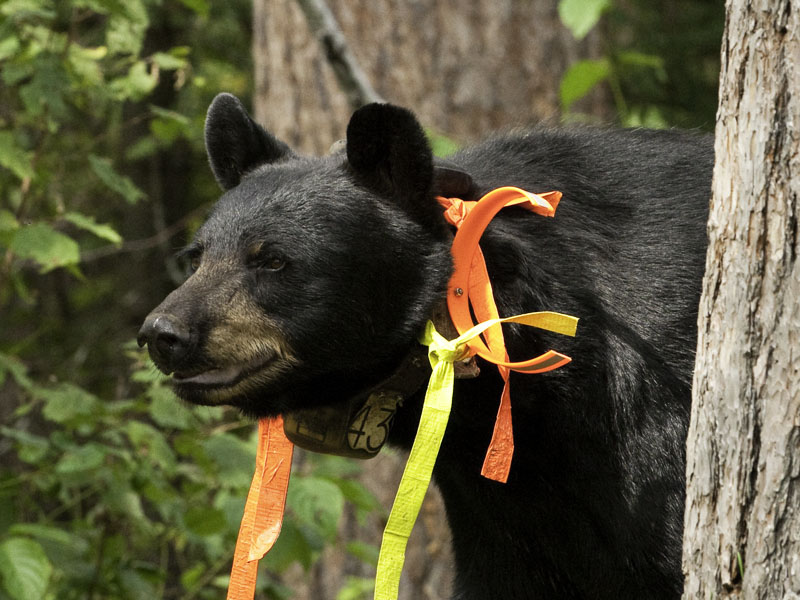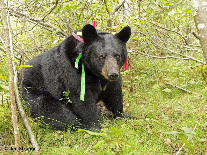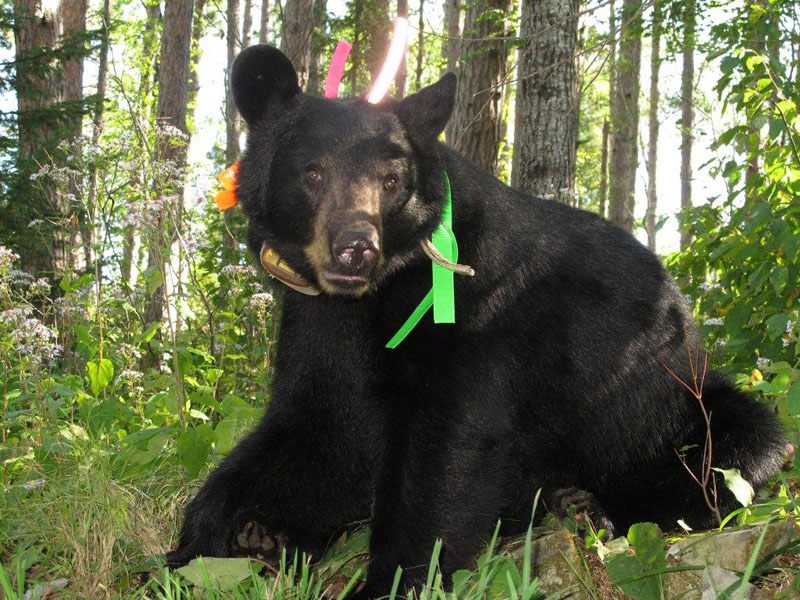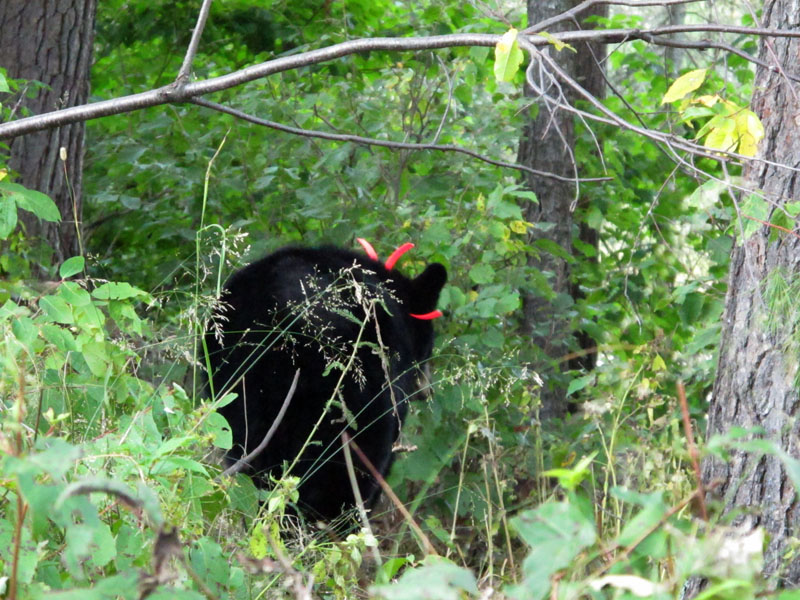 An diesem wirbelwindigen Tag besuchten wir und die Schwarzbär Feldkurs Teilnehmer June, Juliet, Faith, Braveheart und Jewel. Die Bilder der Bären mit leuchtenden Bändern und reflektierenden Plastikstreifen erzählen die Geschichten. Wir glauben nicht, dass irgendein Jäger übersehen könnte, dass das besenderte Forschungsbären sind. Die Jagdverordnung 2012 in Minnesota besagt „Jäger werden gebeten keine besenderten Bären mit leuchtend bunten Bändern oder Ohrmarken zu schießen. Die Saison beginnt am 1. September.