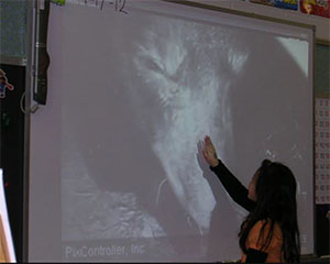 Bezüglich der Höhlenkameras in einem Klassenzimmer von gestern, sagte die Lehrerin „Wir haben die Höhlenkamera jeden Tag, ab Januar bis sie zum Verlassen der Höhle, manchmal den ganzen Tag, auf unsere weiße Tafel gerichtet. Die Bären wurden ein weiteres Mitglied in unserer Klasse. Die Kinder sprachen mit ihnen, als sie aufwachten. Wir haben mit was immer wir gerade machten, aufgehört, wenn es Action im der Höhle gab!“