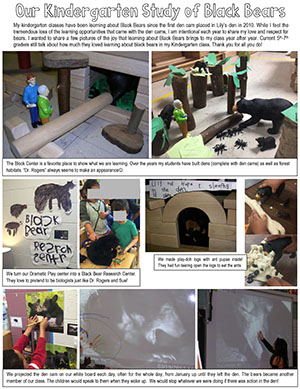 Ich kann die Lehrer nicht genug loben, Interesse an der Welt der Natur zu wecken und gemeinsame Missverständnisse zu wiederlegen. Ein hauptsächliches Ziel des Legacy Fonds des Bären Zentrums ist es, mehr von den Dingen die auf diesem Bild gezeigt werden, zu entwickeln und zu unterstützen (klicken Sie HIER um die Kindergartenstudie in voller Größe zu sehen.)