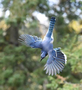 Blauhäher im Sturzflug