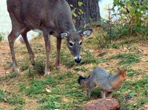 1 = Reh beschnuppert Graufuchs