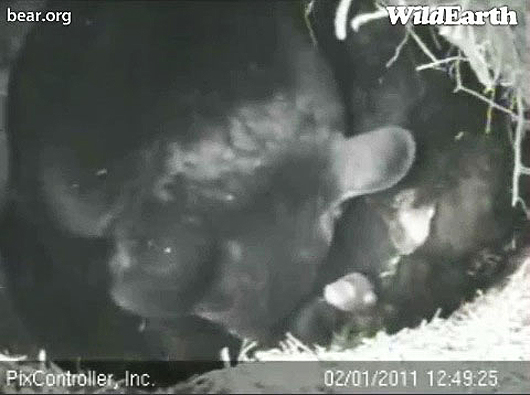 Was für ein ruhiger Tag in der Höhle! Lily hat die meiste Zeit des Tages damit zugebracht entweder zu Schlafen oder die Kleinen unter sich zu stillen, Hope schlief ruhig neben ihr. Ja, Hope grölte manchmal um zu nuckeln, aber grundsätzlich war es ein ruhiger Tag. Nicht, dass das unnormal sei, aber mit all den Aktivitäten in der letzten Woche, ist es ein Unterschied. Schauen Sie sich die fast gleiche Stellung von Lily in den zwei Höhlenkamera Aufnahmen, die im Abstand von 5 ½ Stunden gemacht wurden, an.